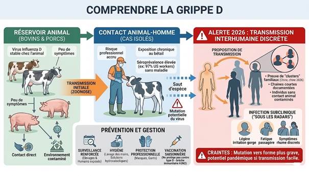 لهذه الأسباب تعتبر بعض المنظمات الصحية الدولية إنفلونزا D فيروسًا ناشئًا يستحق المراقبة.